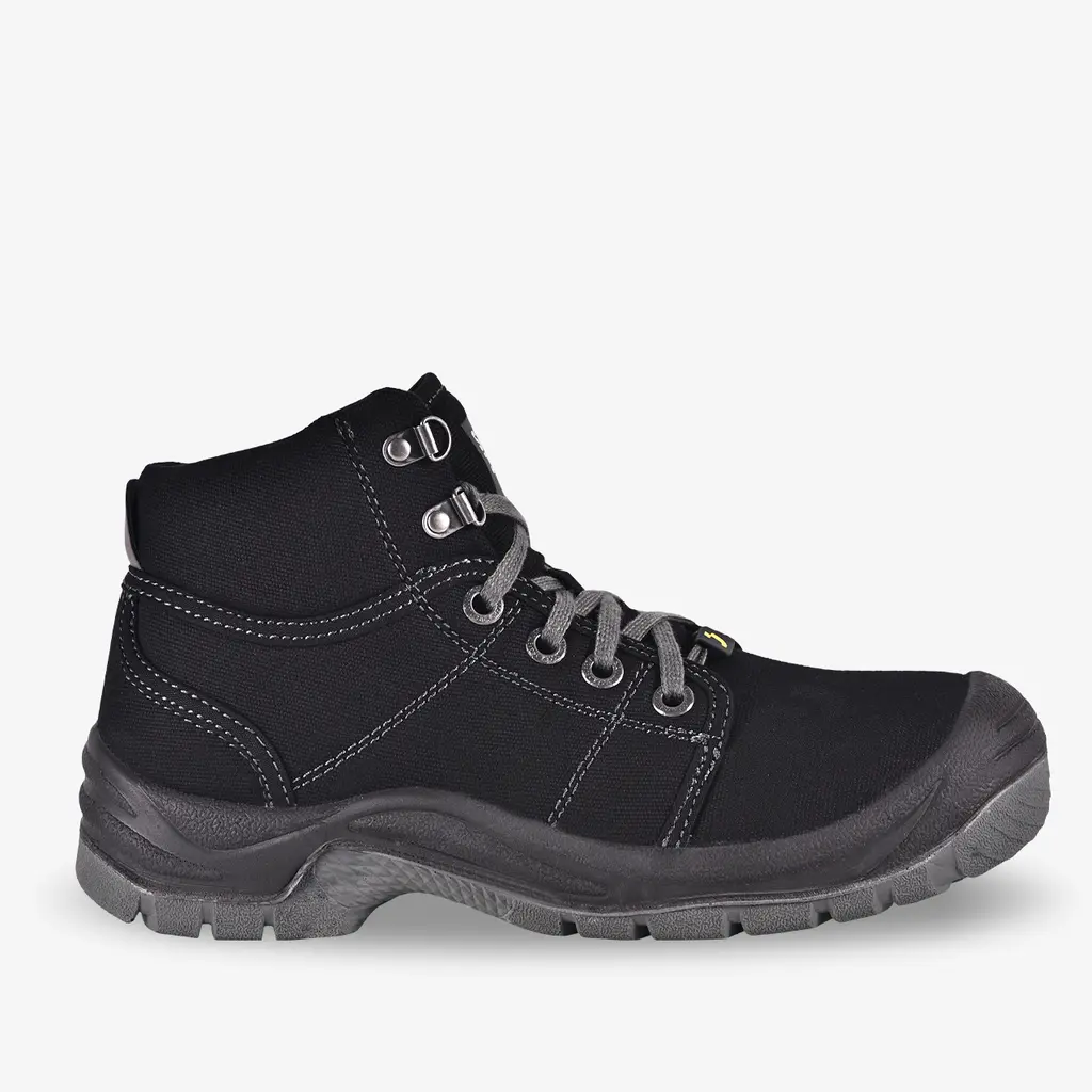 Introducing the versatile DESERT safety shoe, designed for the hardworking individual. This medium-priced safety shoe is not just footwear but a promise of unparalleled safety and comfort. Its slip resistance offers a tight grip on various surfaces, perfect for automotive, logistics, industry, and construction environments. The robust steel toe cap and midsole shield your feet from falling objects and sharp penetrations, while its antistatic feature protects against electrostatic build-up. The DESERT shoe also offers body posture pain relief and keeps your feet cool and fresh throughout the day. With a stylish canvas upper available in black, blue, or sand, it’s more than a safety shoe – it’s a style statement.